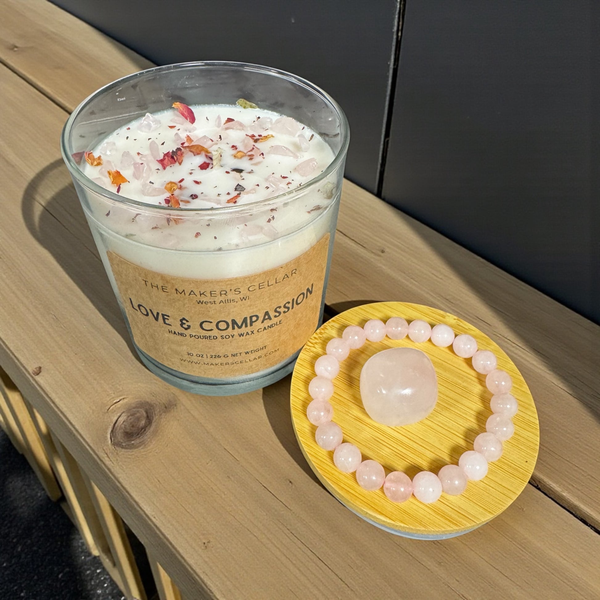 This luxurious offering includes a complementary rose quartz bracelet and tumble stone, extending the experience of love and compassion beyond the burn.